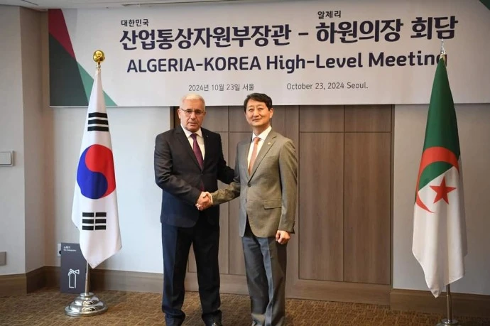 وأوضح نفس المصدر أن اللقاء تناول سبل "تعميق التعاون بين البلدين ليشمل مجال التكنولوجيا الحديثة وتكنولوجيا الإعلام والاتصال والأمن الغذائي وتربية الأسماك مع تواجد أكبر للمجمعات العالمية الكورية بالجزائر".